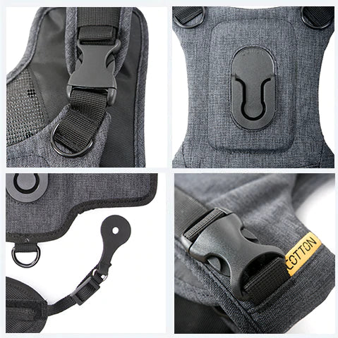 Cameras and lenses are expensive. Why take a chance when transporting your gear? Our high-quality products are made from tough materials: Rugged Nylon 6 camera mounts, hand-tooled anodized aluminum camera mounting hubs, premium polypropylene nylon webbing and straps, precise stitching, and oversized clips all around.