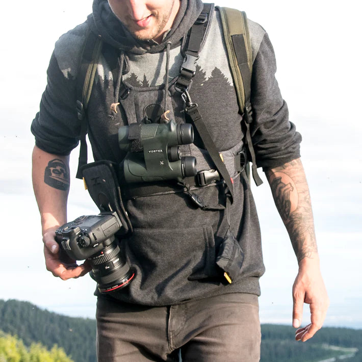 Enjoy your adventures without your binoculars becoming a burden! Designed by photographers, our carrier systems will allow you to carry your binos more comfortably and securely while providing quick access to your essentials. It’s a simple, functional, high-quality harness that guarantees a better viewing experience.