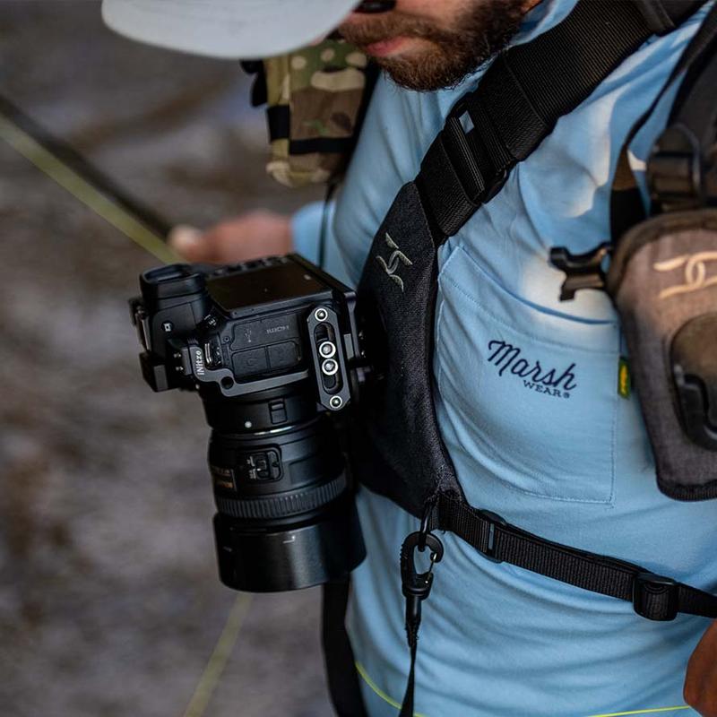 Yes, we offer a modular side holster with camera or binocular hardware. Or the individual hardware for camera or binoculars can be purchased independently.
