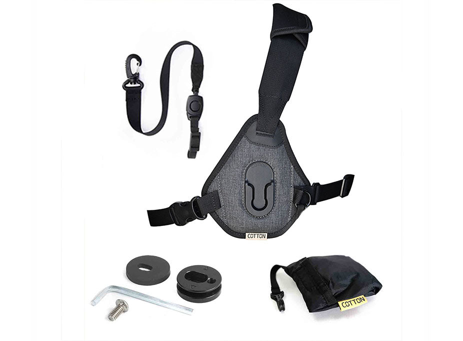 Cotton Carrier original, flat, virtually indestructible, friction-free, hard-anodized aluminum hub. Secured with a slotted hole to allow for slight adjustment to avoid blocking the battery door. A threaded hole on the hub allows you to still use your tripod with our system.