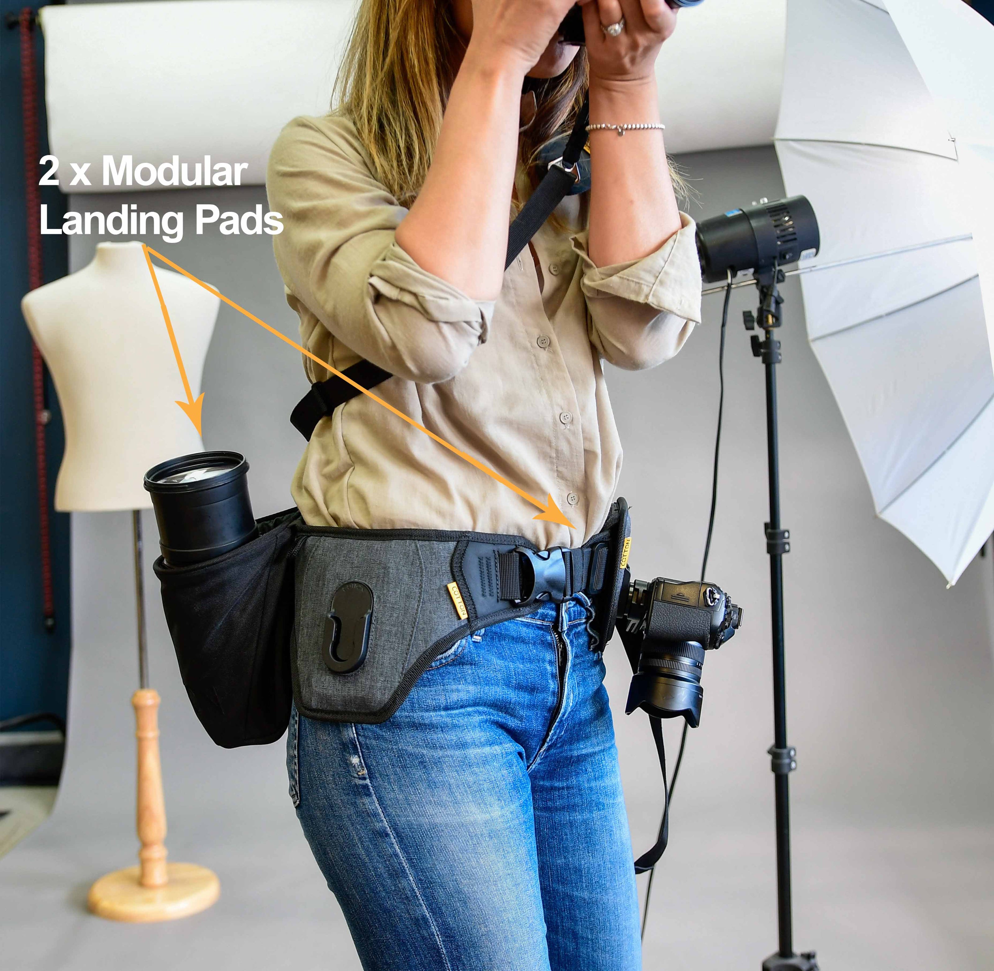 After our first huge success on Kickstarter we gave it another shot with our latest design, The SlingBelt & Lens Bucket system. It was a hit. With 1200% funding and over $150,000 raised over 40 days, we are thrill to have our Slingbelt System as a feature product in our collection.larger lens via the lens foot on your lens to assure maximum comfort. The harness also fits comfortably under a backpack.